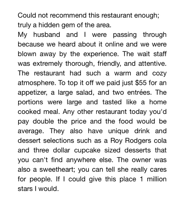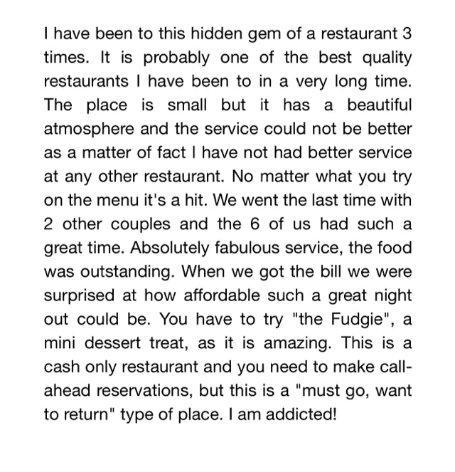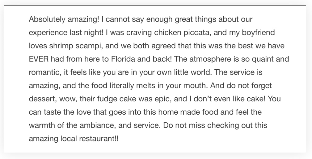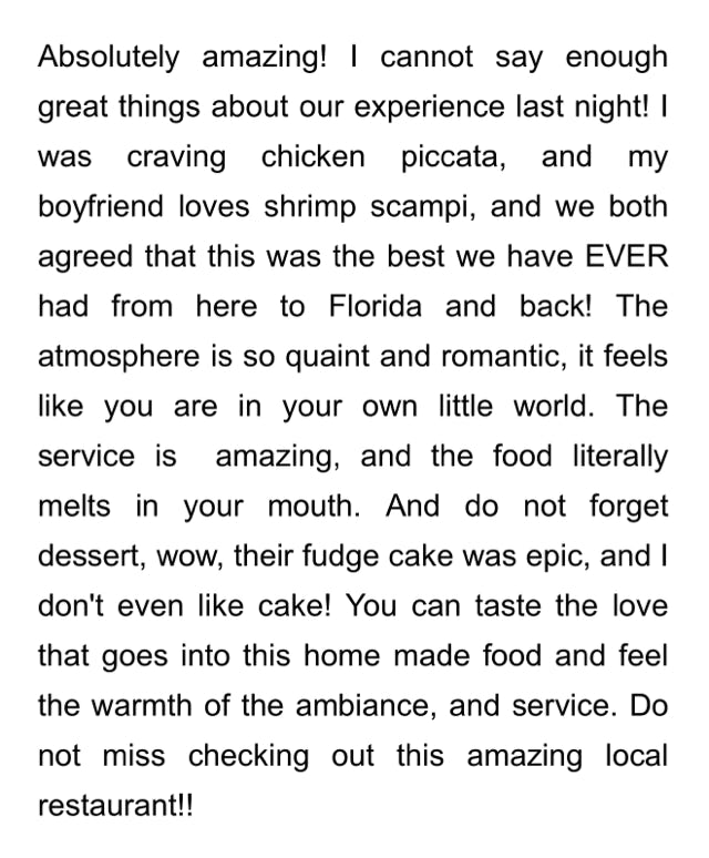 Call ahead seating during business hours