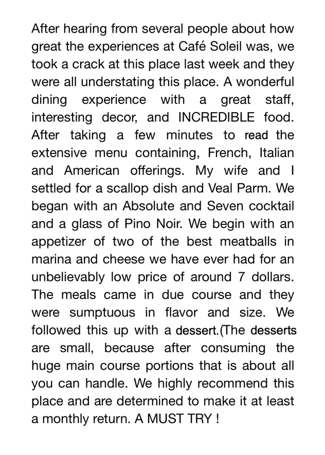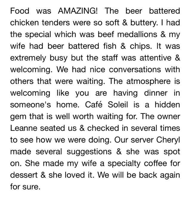 Cafe Soleil Hours
