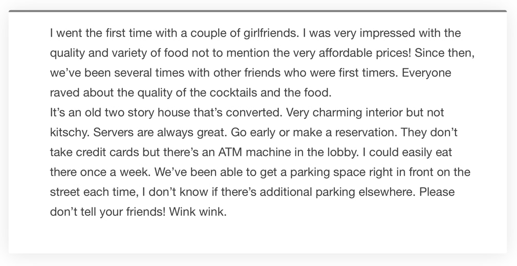 Open: Wednesday to Saturday 4:30 - 8:30 pm